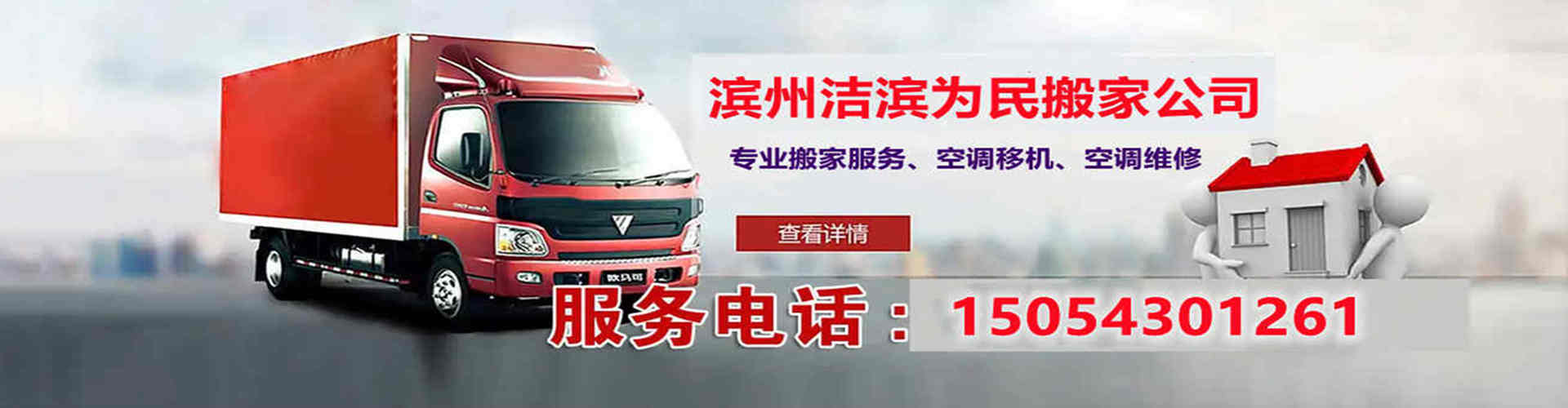 滨州洁滨为民搬家公司是一家信誉良好,服务周到的搬家公司,服务于个人搬家,学生搬家,白领搬家,居民搬家,家具拆装,空调维修、空调移机、商场送货等。服务范围:学生、白领搬家;居民、公司搬家;库房搬迁、空调移机、拆装家具、小时服务、起重服务、长短途运输等业务,欢迎来电咨询!1.搬家服务——居民搬家,公司搬家,企事业单位搬迁,长短途搬家、搬厂、搬钢琴2.空调服务——专业空调技工提供空调拆装、维修、加氟、清洗保养等服务3.家具拆装——各种家具、家私拆装,家具厂出身高级技工服务4.专业包装——提供纸箱、整理箱等各种包装材料,代打包装,整理物品公司承诺:价格低!服务好!一 信誉第一 服务周到二. 热情主动 快速高效三.不吃不喝 不拿不要 客户财产 安全可靠四. 轻拿轻放 不急不躁 收费合理 不乱要价您对我们的信任,就是我们的荣幸,您的满意,是我们的欣慰。 我们将为您提供正规、专业、价格低、服务好、24小时服务、节假日不休的优质服务,让您省时、省力、省心、省金!!一、主要服务项目企业搬家、个人搬家为居民和单位大批量高难度搬家;跨省市长途搬运;商场送货;专业搬运钢琴和家具;大件物品搬运;专业拆装家具:设有家具拆装工程部门,由专业拆装工程队伍负责拆装高中档办公家具、组合家具等;空调移机:设有空调拆装工程部门,由专业拆装工程队伍负责各式空调移机、安装和调试,及各种热水器专业拆装;钢琴搬运:设有专业人员负责钢琴搬运。