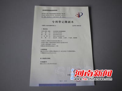 【中原经济网讯】 近日,从国家知识产权局传来喜讯,由鹤壁市消防支队工程师涂志华和战训科科长王晓栋联合改进研制的《风送喷雾式排烟降烟机》,喜获国家发明专利。