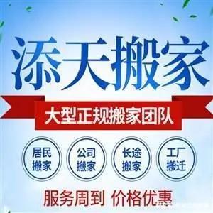 沈阳添天搬家公司是诚信商家,专业正规,价格合理,不乱收费,欢迎来电! 服务范围:居民搬家,公司搬家,包装托运,长短途运输,大件物品搬运,钢琴搬运.可承接全国各地整车,零担长途运输业务.欢迎来电咨询! 服务项目: 1.搬家服务居民搬家,公司搬家,企事业单位搬迁,长短途搬家,搬厂,搬钢琴 2.专业包装提供纸箱,整理箱等各种包装材料,代打包装,整理物品 3.长途搬家提供长途搬家,异地搬家,跨城市搬家,私人物品运输,办公室搬迁,家具电器拆卸安装,货物安全包装,钢琴搬运等服务. 4.空调服务专业空调技工提供空调拆装,维修,等服务 5.家具拆装各种家具,家私拆装,专业高级技工服务温馨提示:为了不耽误您的行程,请您提前预约!