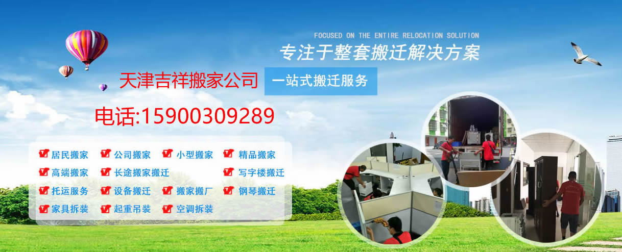 天津搬家公司电话:15900309289.吉祥搬家公司是成立较早的天津搬家公司,专业提供公司搬迁,设备搬迁,长途搬家,鱼缸搬运,钢琴搬运,高档家具拆装,空调移机等服务,打包还原,高端定制化一站式搬家服务,只要你需要,我们竭诚为您的爱家和家居提供VIP搬运服务。天津吉祥搬家在业界拥有良好的口碑和广泛的市场影响力,我们所有员工均经过岗前培训,搬运技术熟练,超强的责任心,能够为客户的服务做到非常满意! 满满当当装车,实实在在做人。吉祥搬家公司以满足顾客要求为已任,以顾客满意为标准.我们一直以来遵循"客户第一,服务第一,质量第一,信誉第一"的理念,现已成为天津规模较大的专业搬家公司。坚持低价诚信,天津搬家公司价格采取一费制,一口价通天津。正规资质,服务到位,重信誉守承诺!喜气盈盈搬迁,和和美美入驻。事业生意步步高升,幸福生活天天开心。天津吉祥搬家公司拥有完善的搬家设备和一批技术精湛、经验丰富的员工队伍。 本司拥有各种大小厢式货车、吊车、叉车、平板车等专业搬家车辆,并拥有一支训练有素的搬家队伍。天津吉祥搬家公司始终坚持“诚信服务,服务千万家”,我们追求的是“一流的服务+合理的收费=100%的满意”。吉祥搬家以诚信的服务、过硬的质量、良好的形象,受到了社会各界的一致肯定,公司连续获得天津市文明单位,天津市搬家服务先进单位,天津市搬家行业协会信得过单位等荣誉称号。近期搬家吉日集中,搬家订单较多,请提前预约。